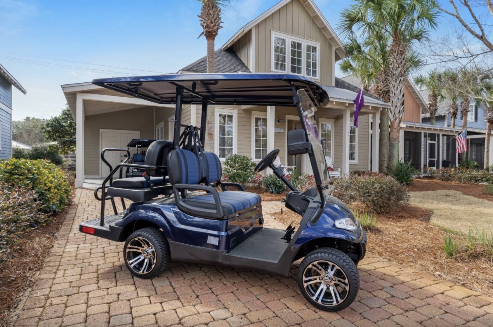 Outdoors, enjoy relaxing evenings on the oversized screened-in porch and extended patio overlooking the lush backyard — a great spot for morning coffee or sunset gatherings. Best of all, two golf carts are included at no extra charge, making it easy and fun to explore everything the Resort has to offer: from pristine beaches and scenic trails to the neighborhood putting green, pool just across the street, vibrant entertainment at Baytowne Wharf, or a short ride to one of four championship golf courses.